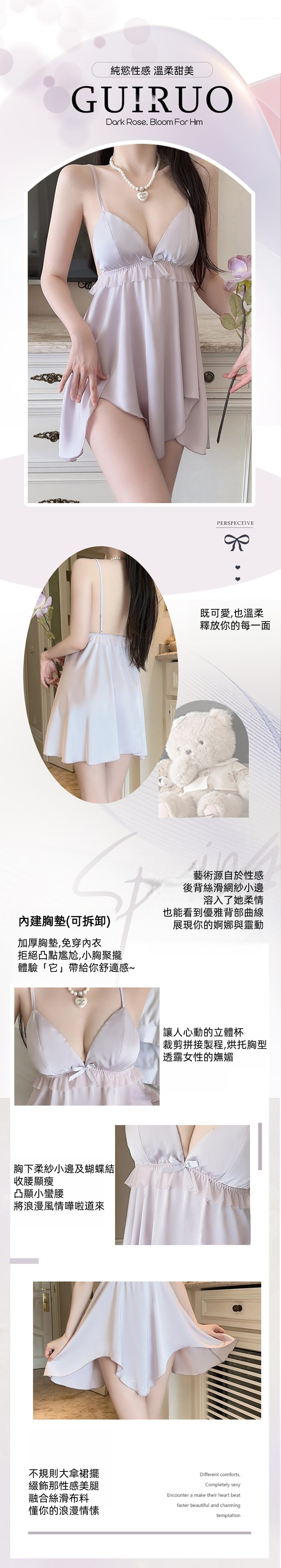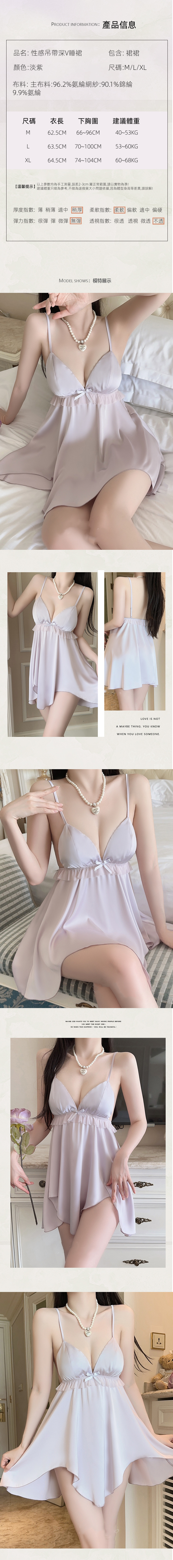 中大尺碼 深V聚攏胸墊絲滑緞面不規則設計顯瘦連身睡裙