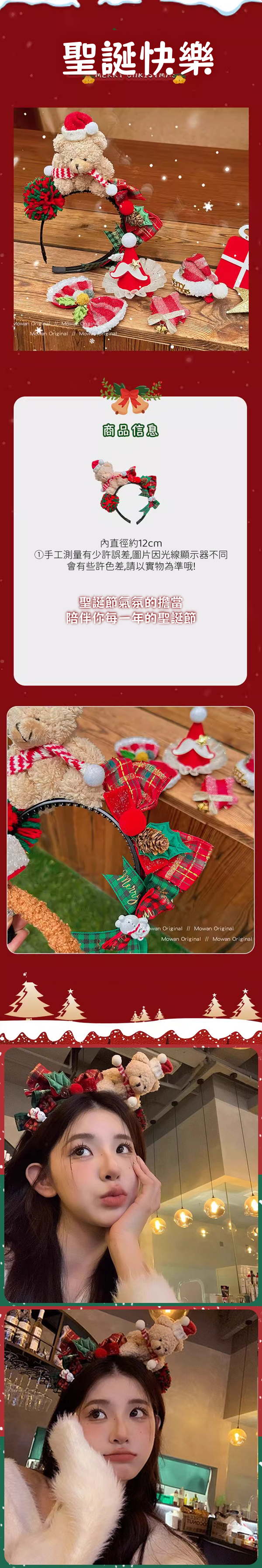耶誕韓式聖誕小熊甜美頭飾俏麗髮箍
