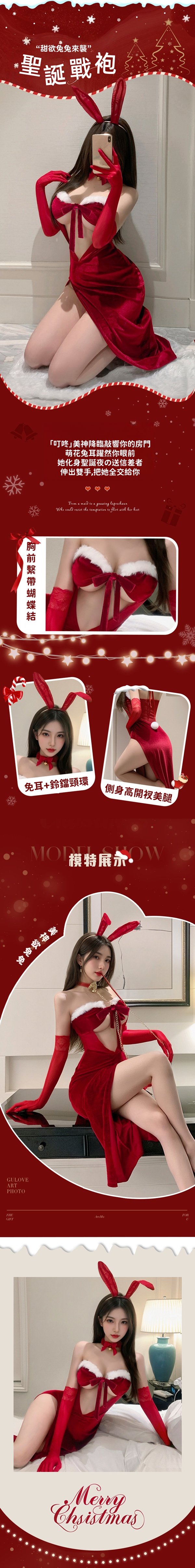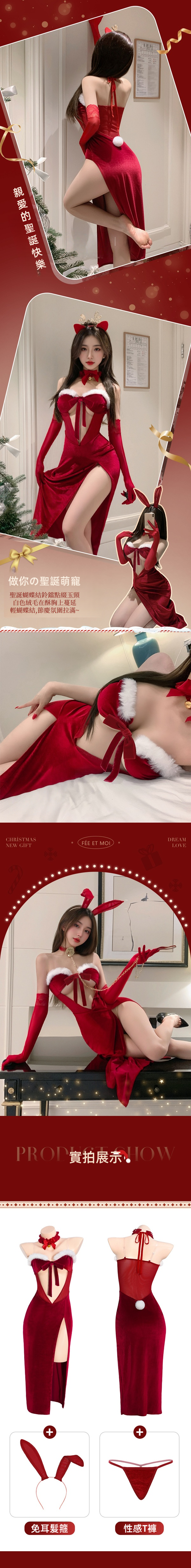 性感絲絨聖誕欲兔氣質長裙開衩套裝六件組