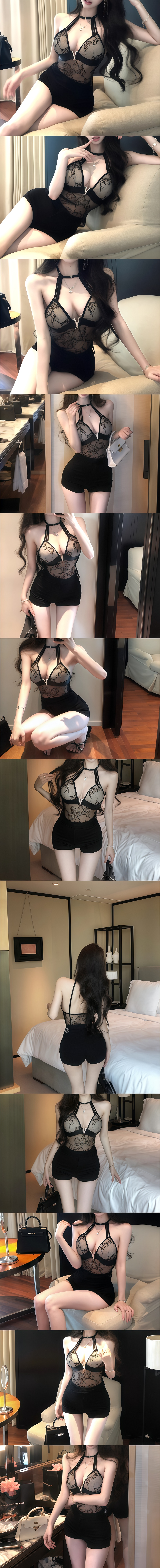 純欲性感深V掛脖鏤空蕾絲修身背心上衣