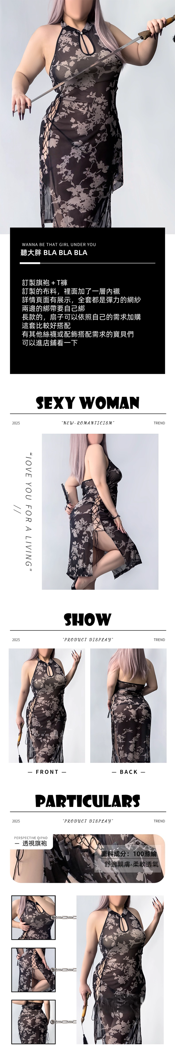 中大尺碼 復古鏤空綁帶國風旗袍裙