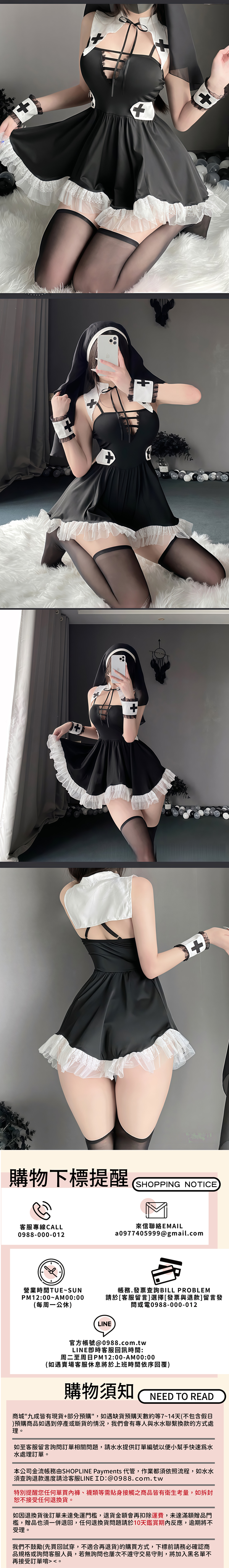 ■商品內容:修女頭紗+手環*2+連身裙+T褲