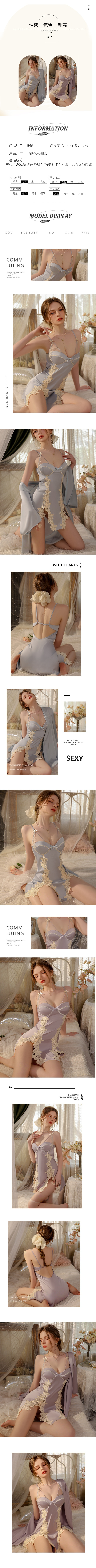 性感純欲美背蕾絲深V聚攏胸墊絲滑緞面連身睡裙 胸墊睡衣