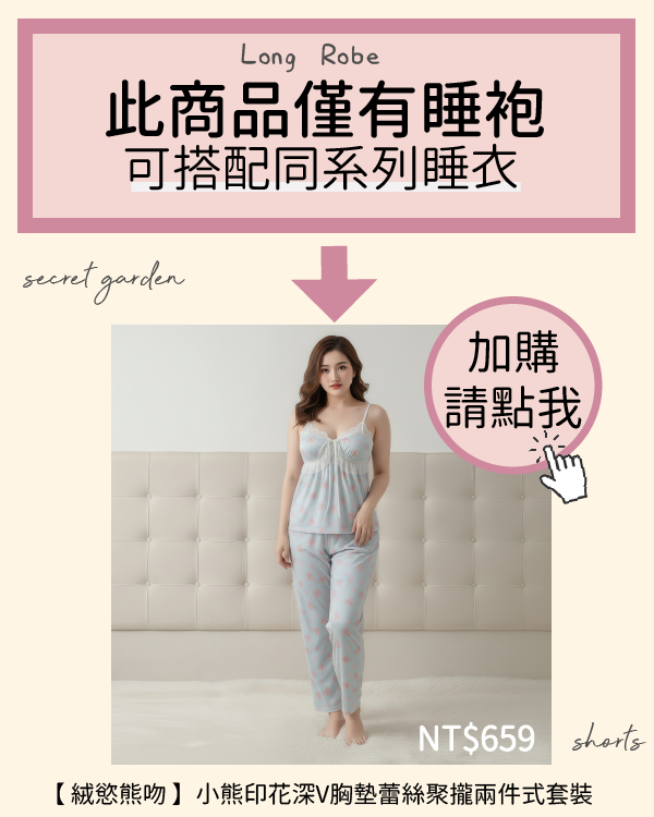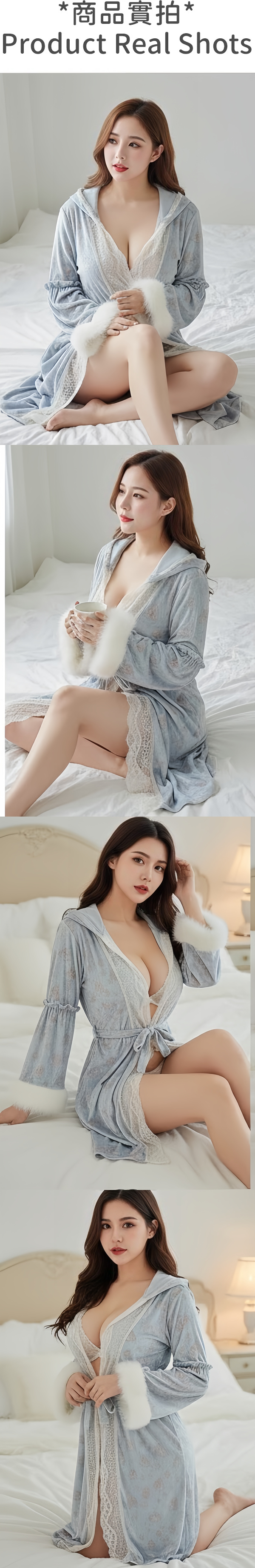 絲絨可愛小熊印花蕾絲純欲毛絨袖口絲絨睡袍