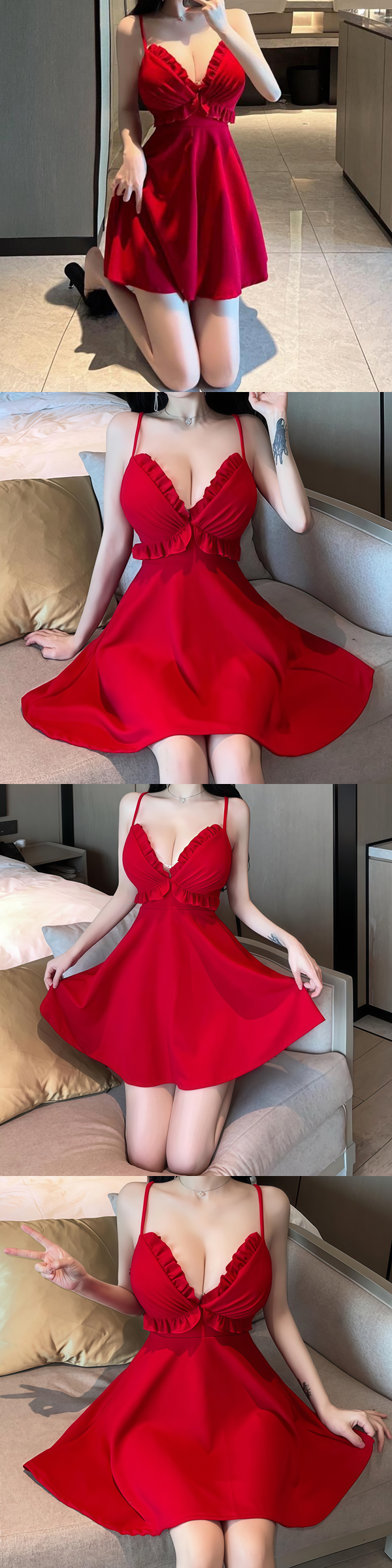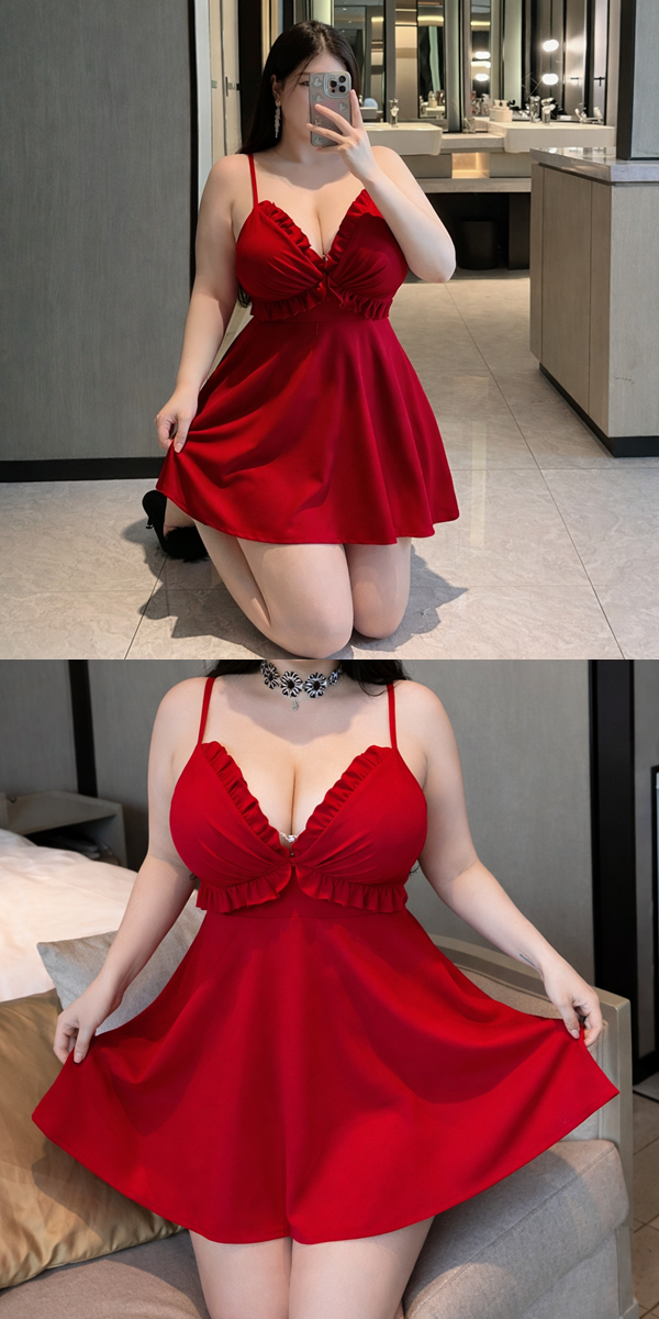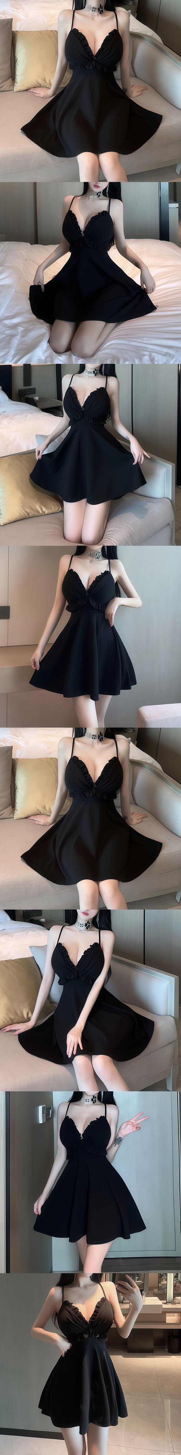 中大尺碼 性感深V修身顯瘦A字裙(有胸墊)