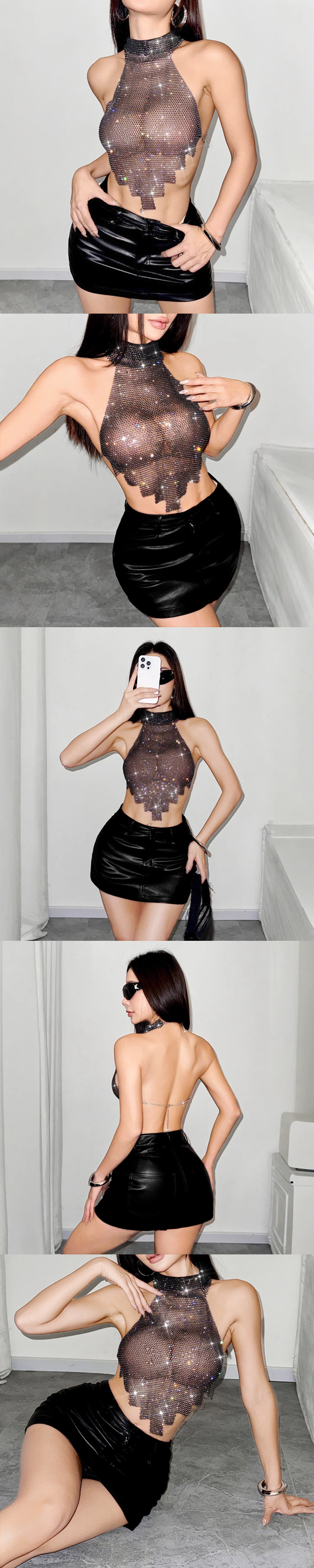 水鑽漁網閃鑽性感掛脖背心上衣