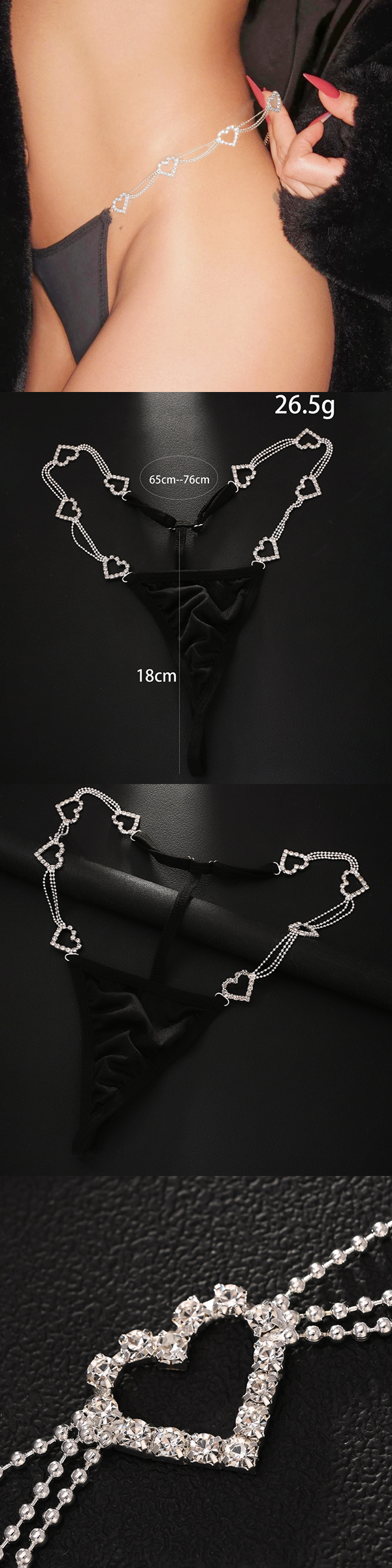 丁字褲【鑽鍊心跳】歐美性感愛心水鑽鏈條誘惑丁字褲 012131