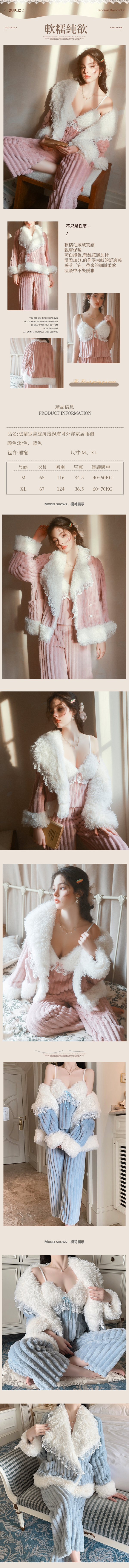 秋冬法蘭絨蕾絲拼接親膚可外穿家居睡袍