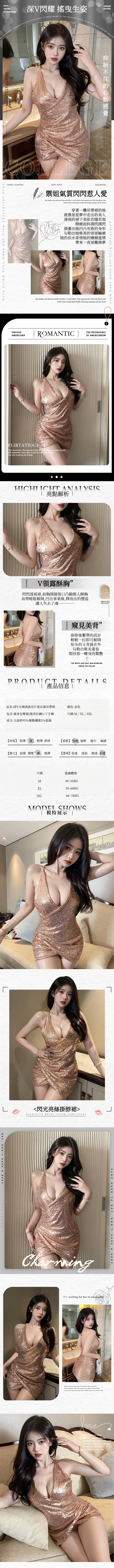 中大尺碼 性感深V火辣誘惑亮片夜店風吊帶裙