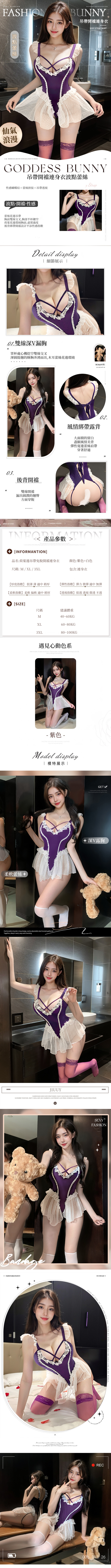 中大尺碼 銷魂美胸顯瘦蕾絲荷葉邊吊帶免脫開襠連身衣