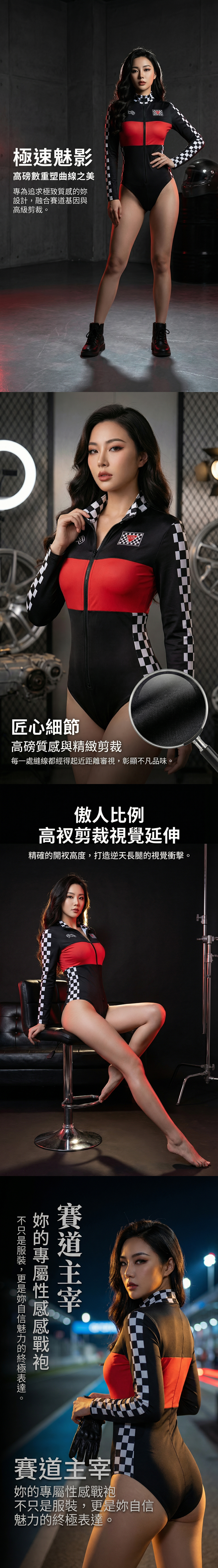 賽車車模性感拉鍊連身衣.賽車女郎