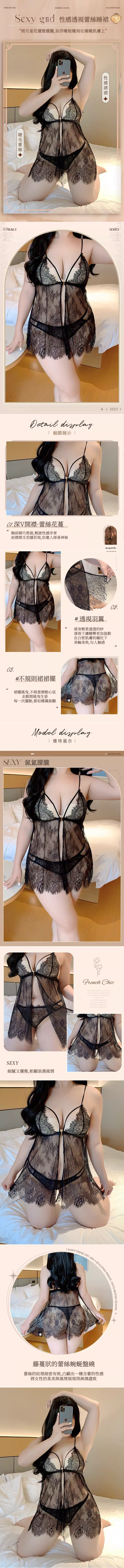 中大尺碼 性感蕾絲緹花薄紗透視鋼托情趣睡衣