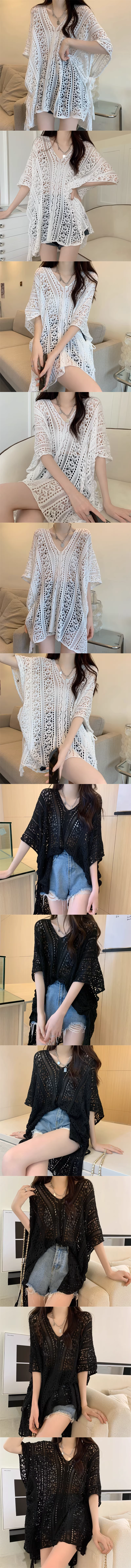 寬鬆針織鏤空鈎花波西米亞民族風罩衫