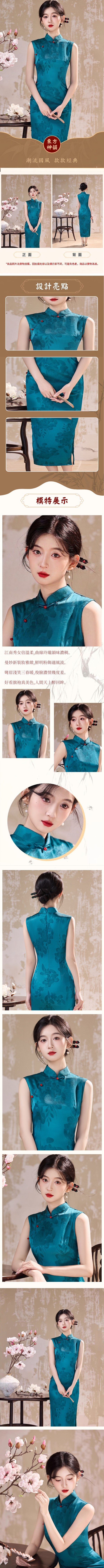 中大尺碼 氣質顯白新中式緞面修身顯瘦改良長旗袍