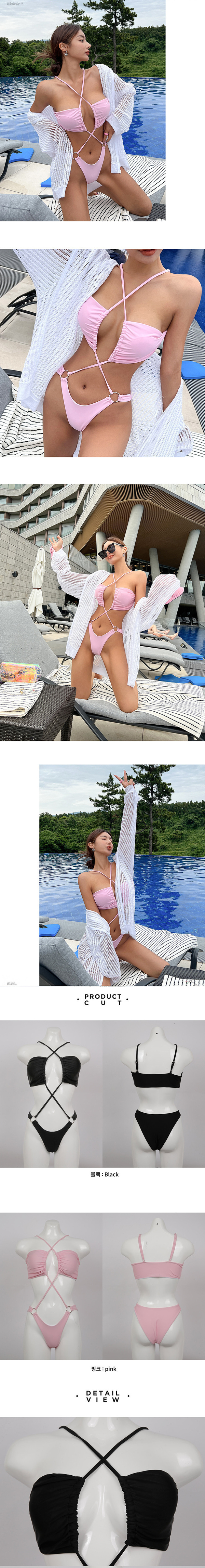 中大尺碼 辣妹露腰線條設計深V高衩韓系泳衣