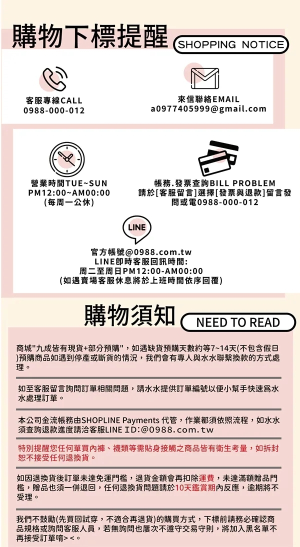 (如為商品本身暇疵,接受七日內換貨,請勿試穿,謝謝您)