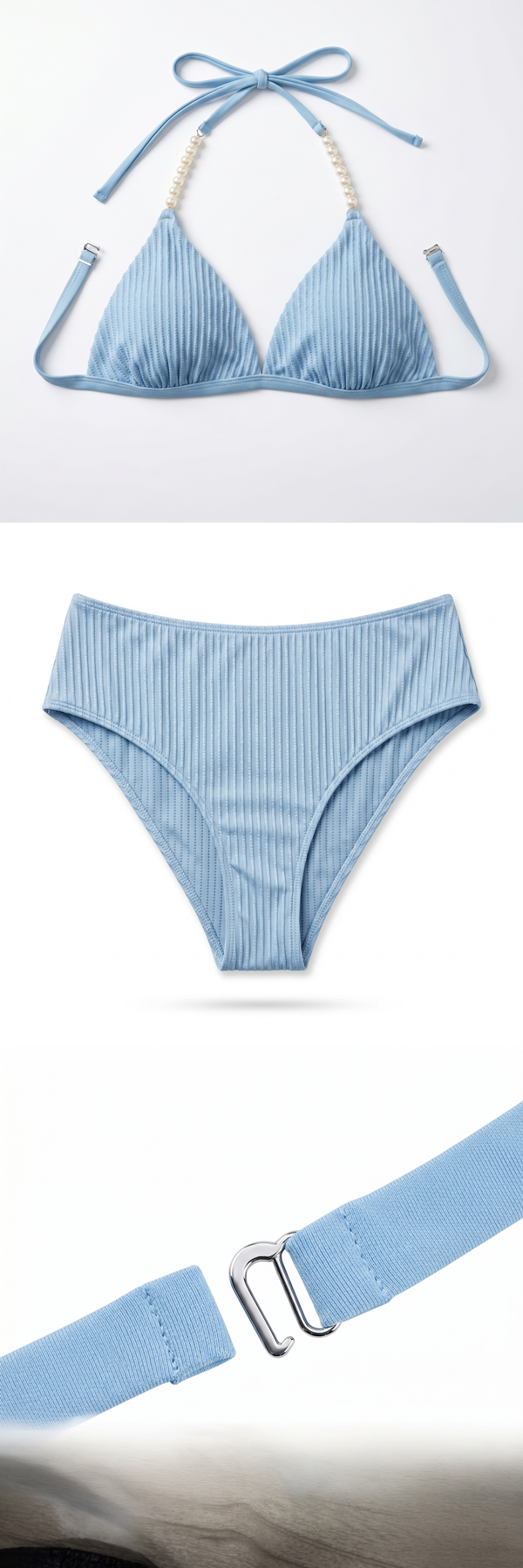 有胸墊(可拆) | 珍珠掛脖 | 坑條紋理
