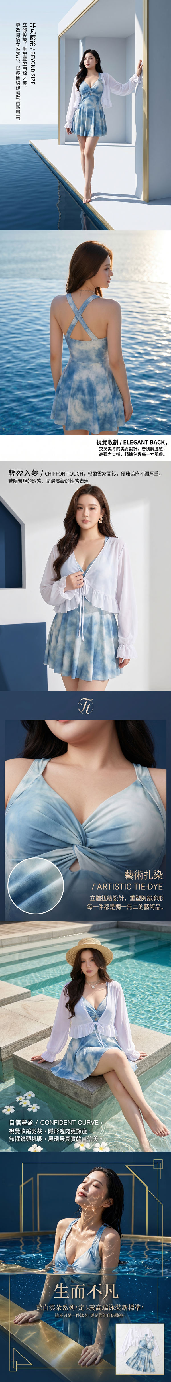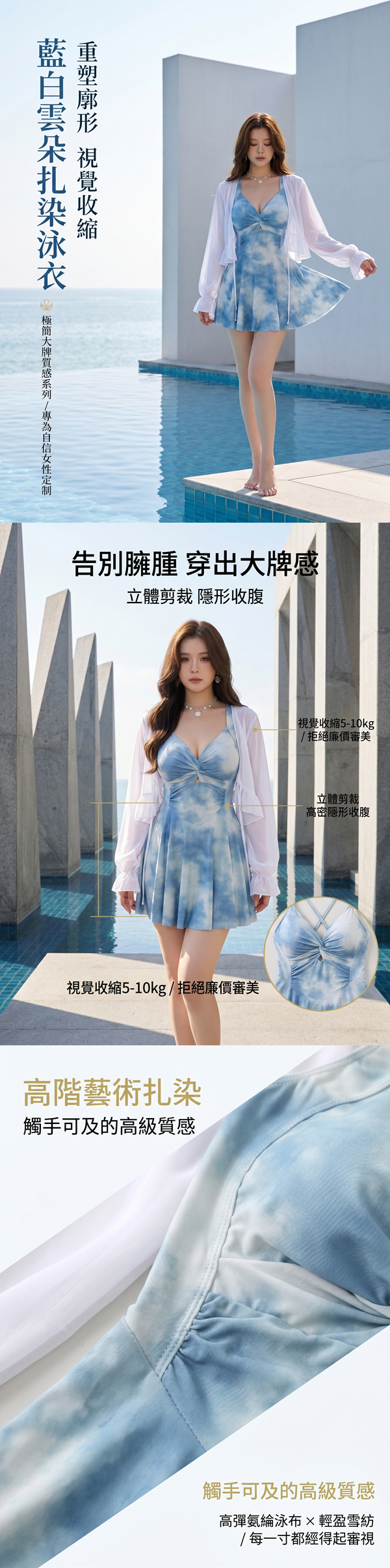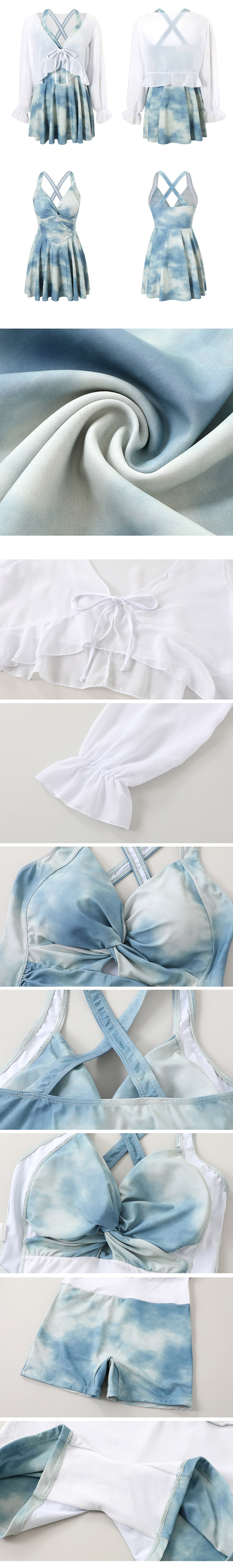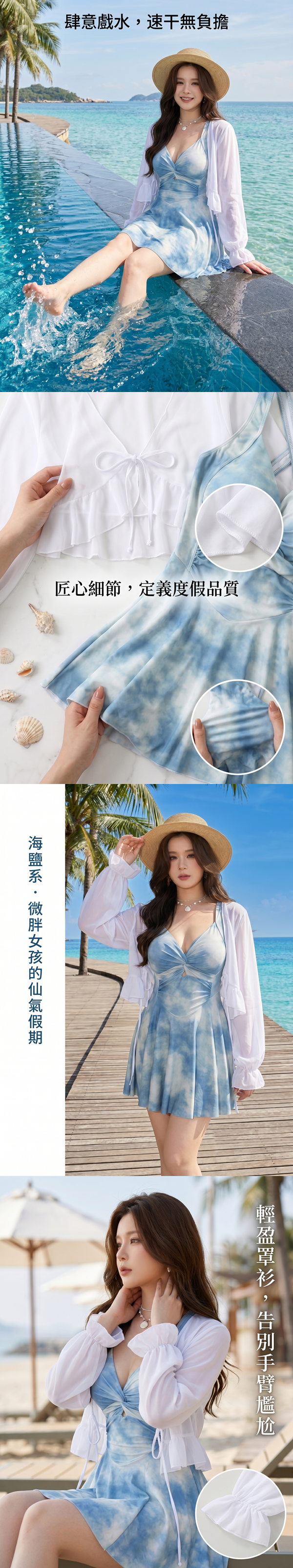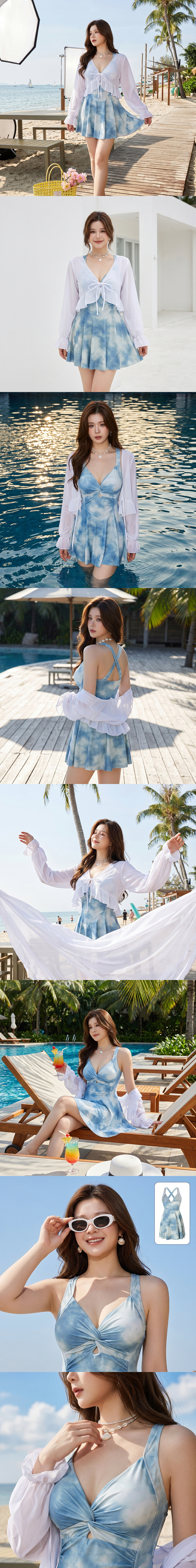 韓系微性感暈染收腰顯瘦遮肚連身裙泳衣罩衫兩件套
