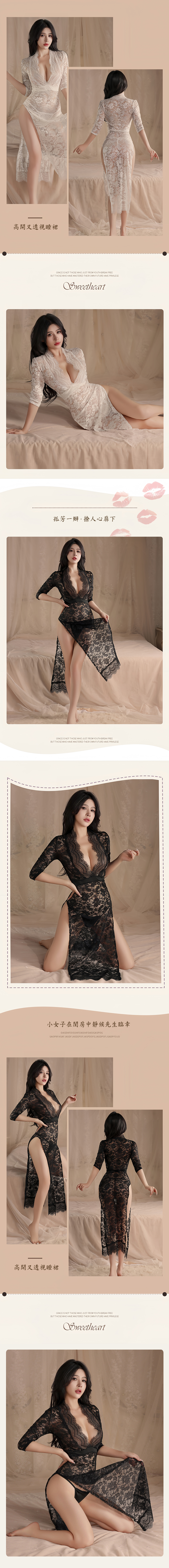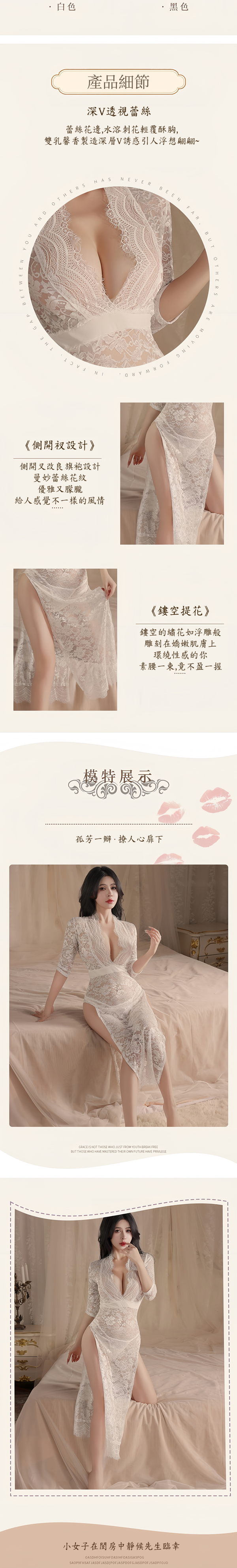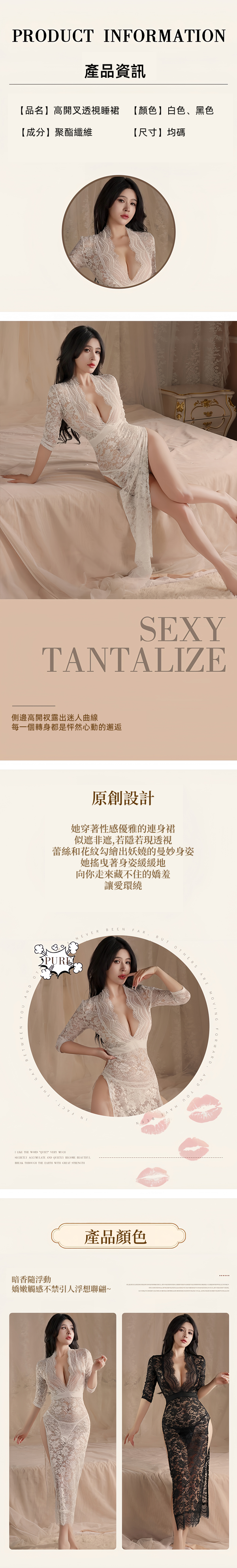 性感蕾絲印花火辣開高叉長裙連身睡裙