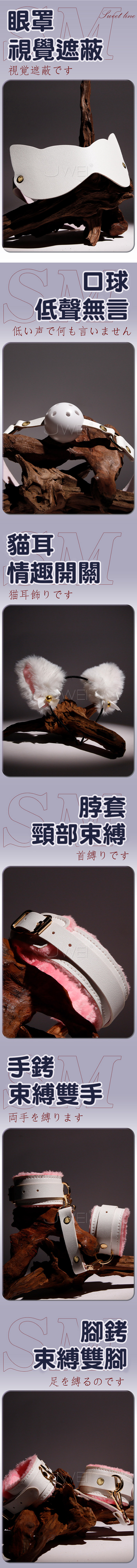 內容:眼罩、口球、十字扣、脖套、手銬、腳銬、牽引繩、貓耳、蠟燭、手拍、乳夾、連結扣