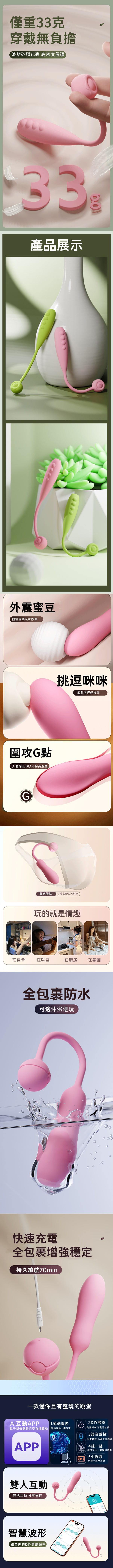APP操作:透過APP遠端操控,輕鬆調整震動模式與強度,提升互動樂趣。