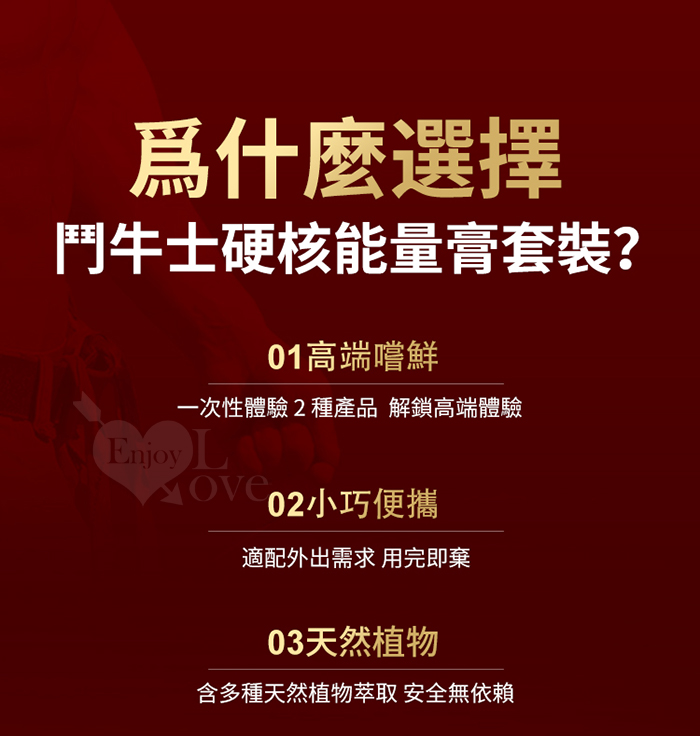 • 套裝內含 2 款 5ml 小規格單品:鬥牛士和鬥牛士XXXL,一次入手解鎖雙款核心產品