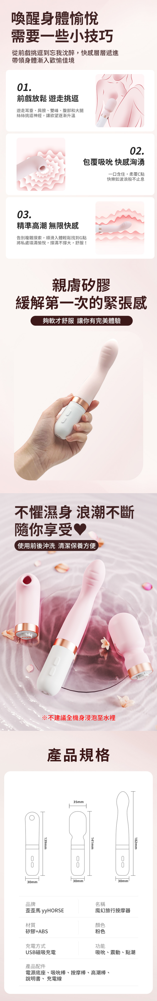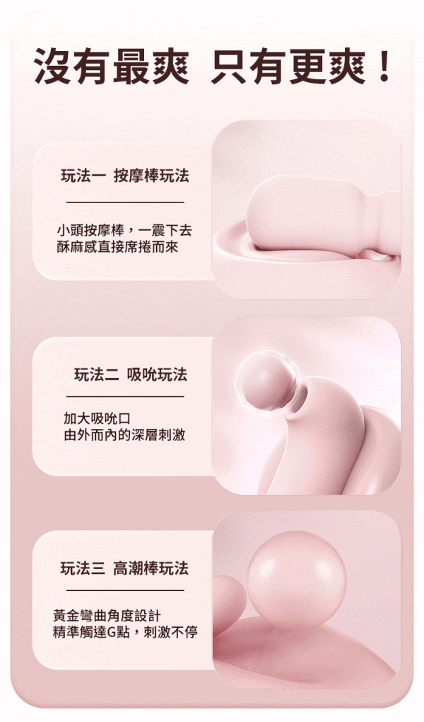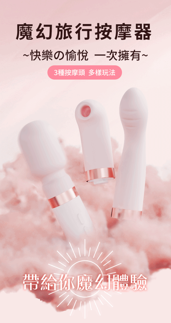 超卡哇伊的粉紅按摩套組–魔幻旅行按摩器帶你飛向極樂的魔幻宇宙世界高潮棒:開啟金手指模式,直達G點深處,彷彿神之手親臨現場吸吮棒:真空吸吮,狗喝水不求人,一步步帶你飛往夢幻天堂AV棒:超高速震動,圓滑棒頭搭配高速震波,直接秒濕!