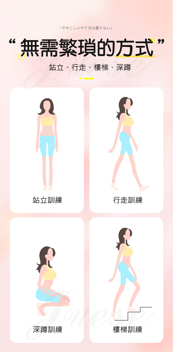 🔸重力設計:使用重力鍛鍊,幫助女性提升盆底肌群的力量。