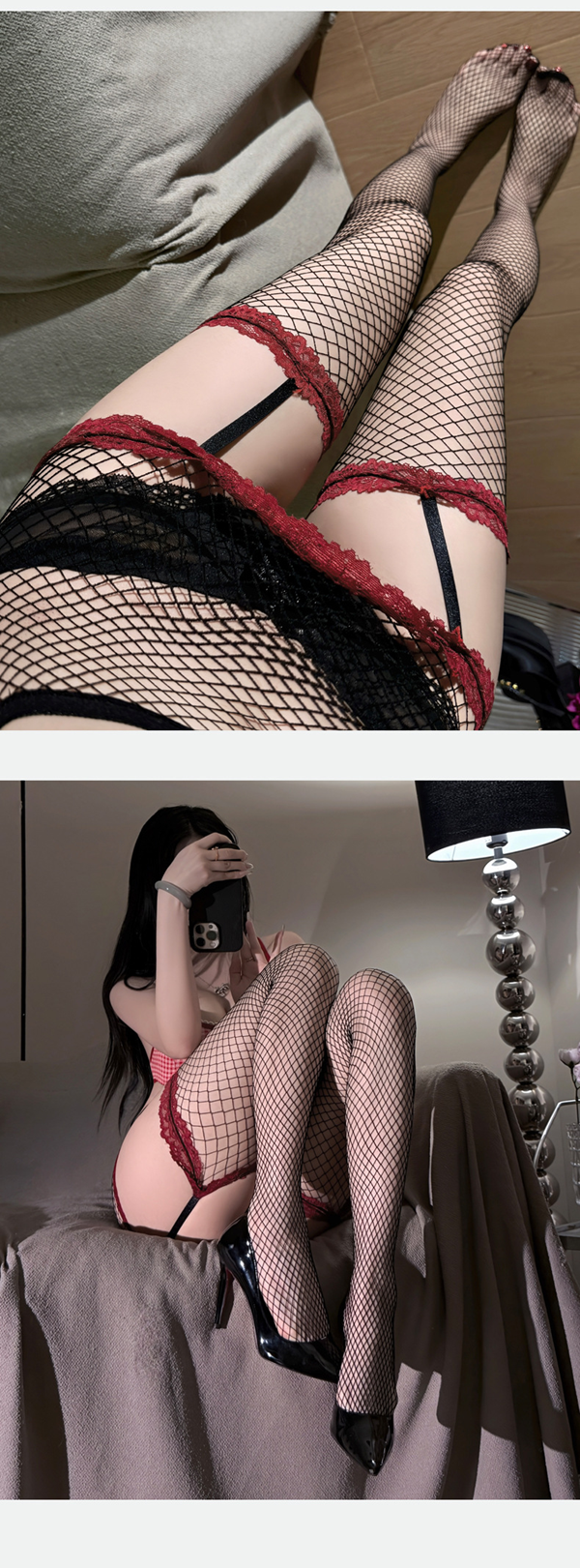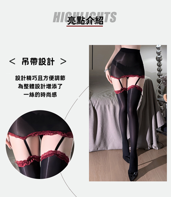 吊帶一體式包臀絲襪超薄極光油亮紅邊油光黑絲