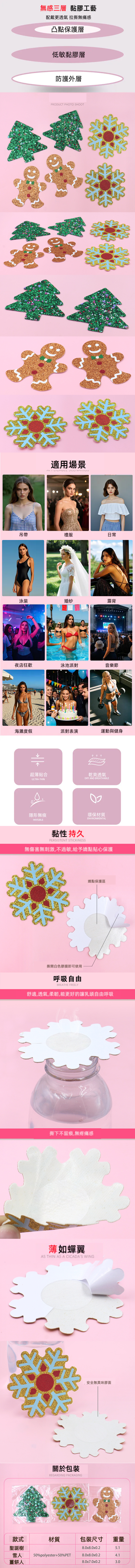 3款 聖誕耶誕 party狂歡乳貼 主題胸貼 咪咪貼 一次性造型胸貼