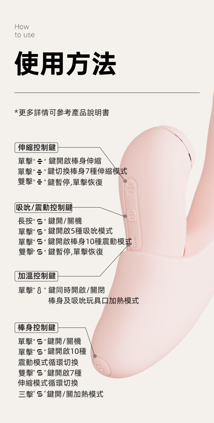 🔸雙重功能:伸縮+吸吮設計,結合震動功能,全面滿足需求。