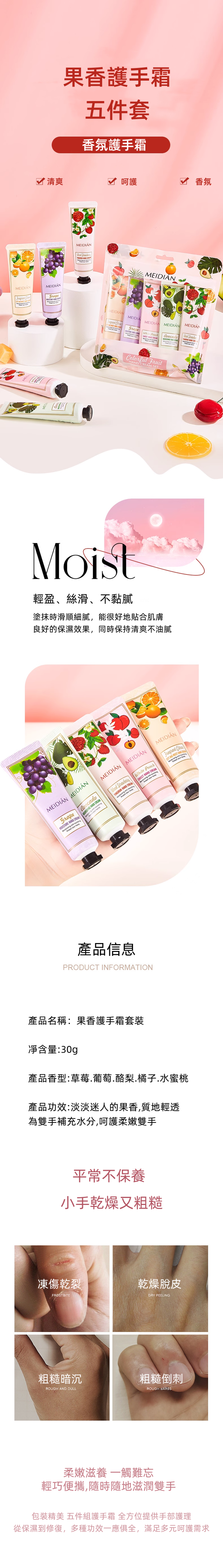 果香護手霜 水潤清爽保濕護手霜五件組