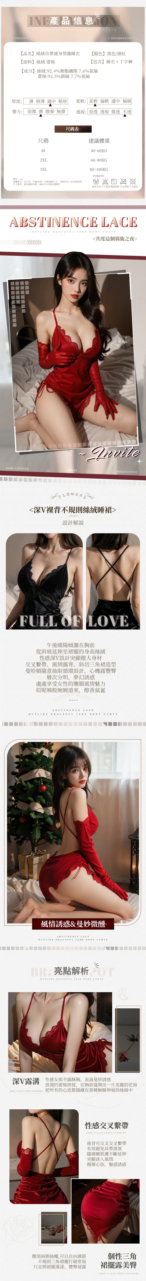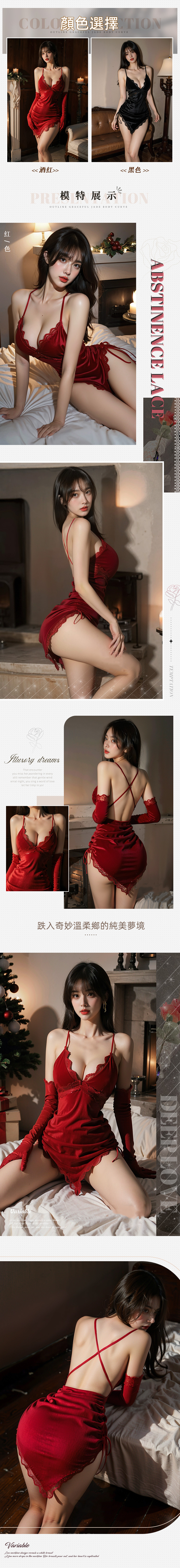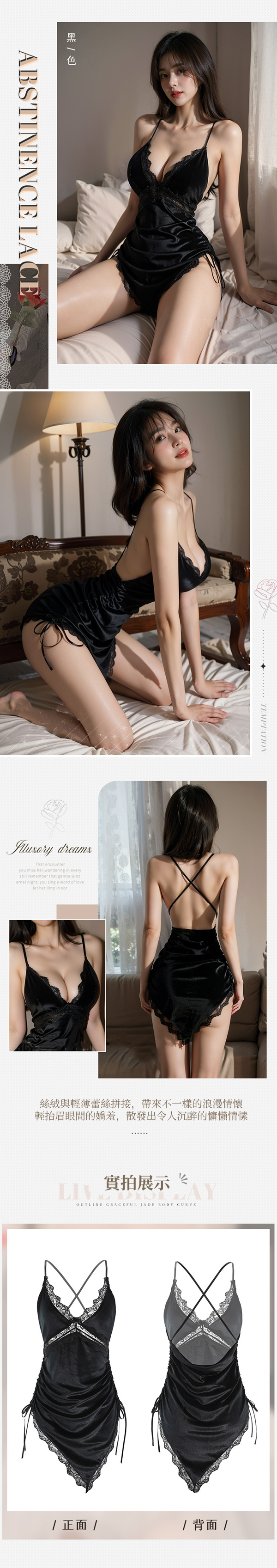 絲絨吊帶連身情趣睡衣+同系列丁字褲