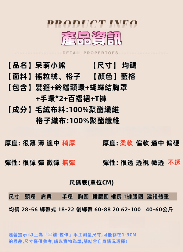 ※ 商品內容:髮箍+鈴鐺頸環+蝴蝶結文胸+百褶裙+手環*2+丁字褲