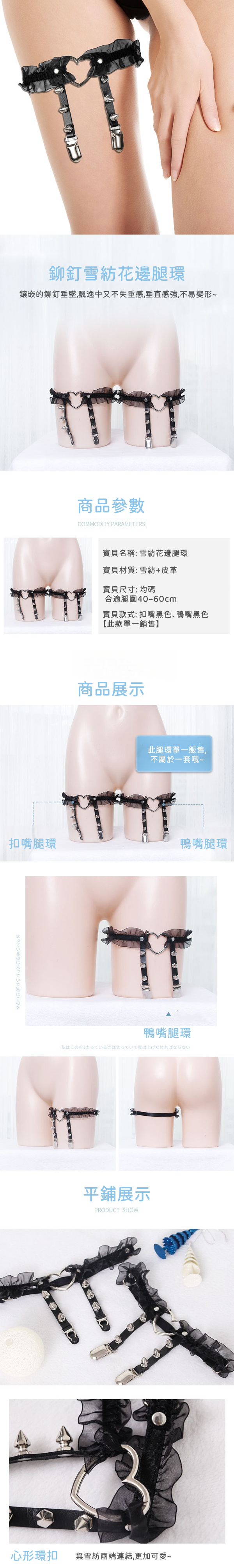 蕾絲花邊腿環配件 桃心鉚釘潮流腿環 鴨嘴款