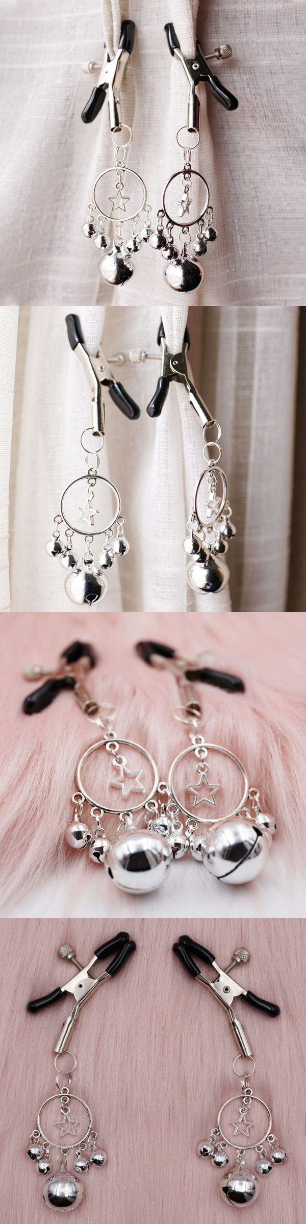 男女情趣用品,可愛又有趣。運用兩個小夾子,夾在乳頭上,乳房的顫動,鈴鐺在胸前的晃動,搖擺晃動時發出清脆的鈴鐺聲音,更能增進狂野刺激,定能撩起無限情慾
