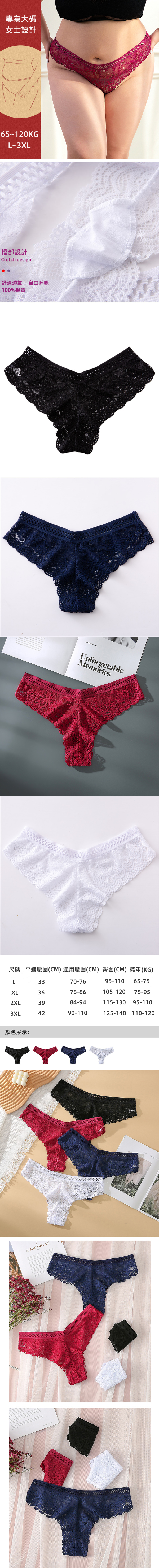 中大尺碼性感蕾絲無痕丁字褲