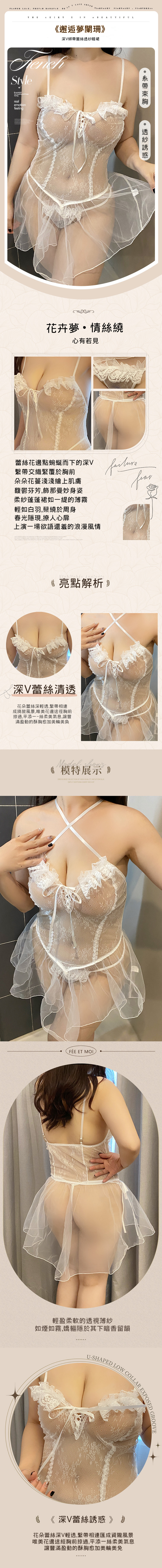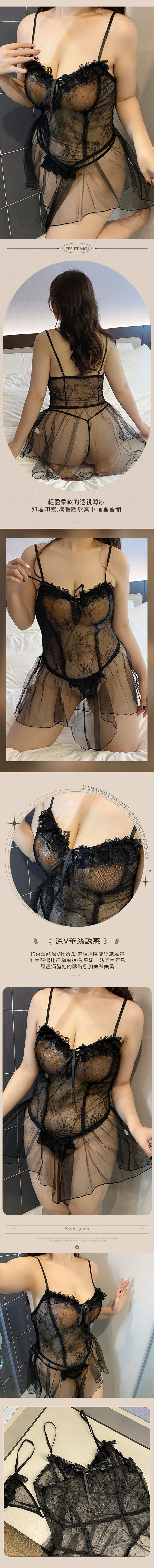 中大尺碼性感蕾絲繫帶薄款透視睡衣