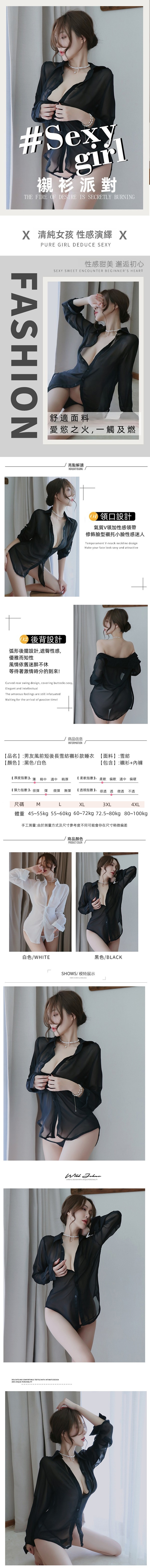 男友風前短後長雪紡襯衫款睡衣