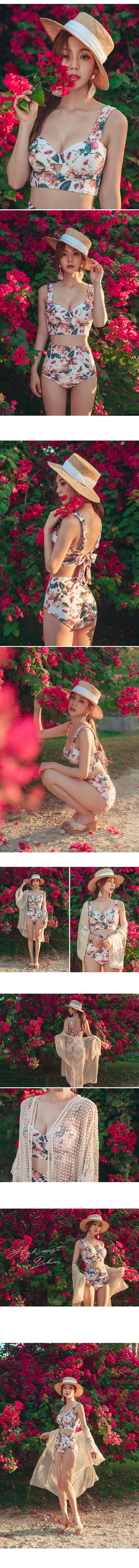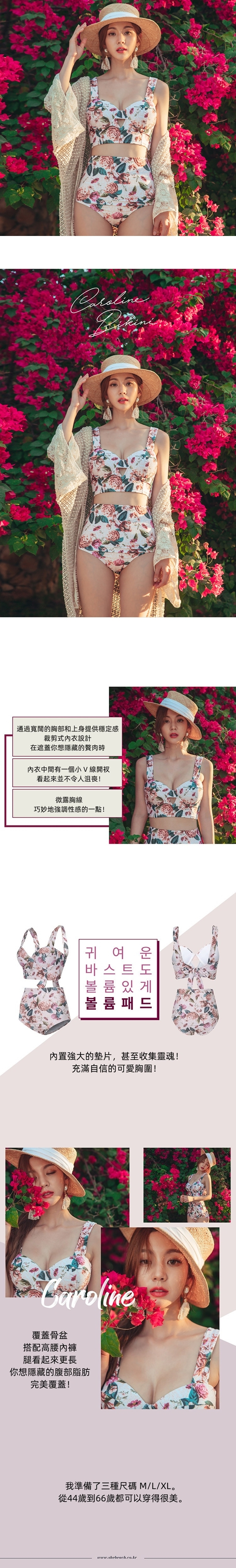 韓版小碎花遮肚分體套裝(鋼圈/胸墊)
