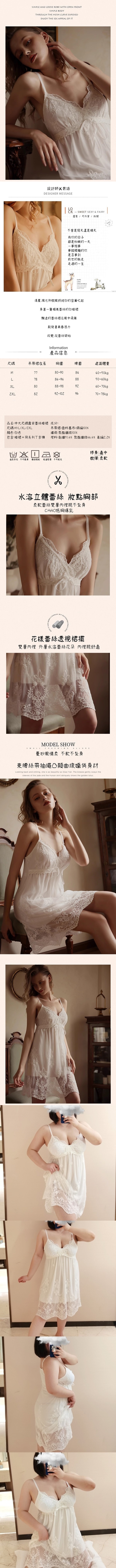 中大尺碼露背蕾絲公主花邊睡裙可外穿睡衣(睡裙+同系列丁字褲)