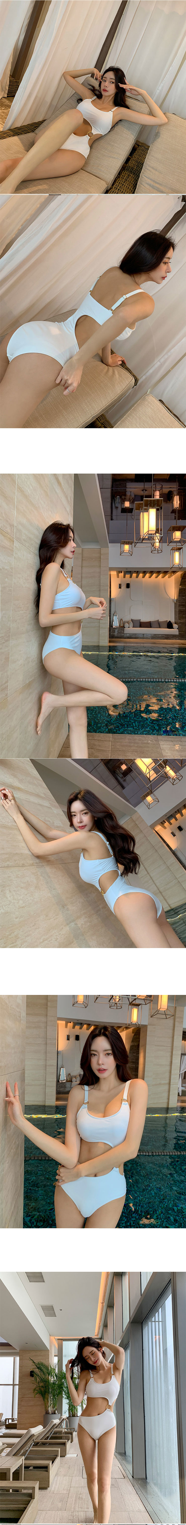 韓版金圈挖空露腰連身泳裝(胸墊)