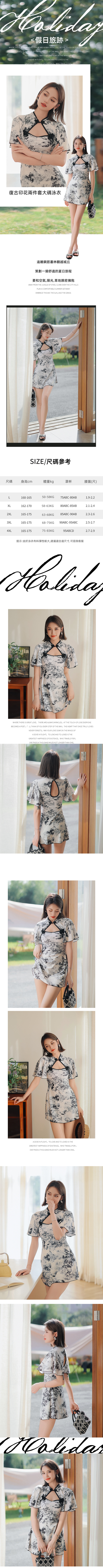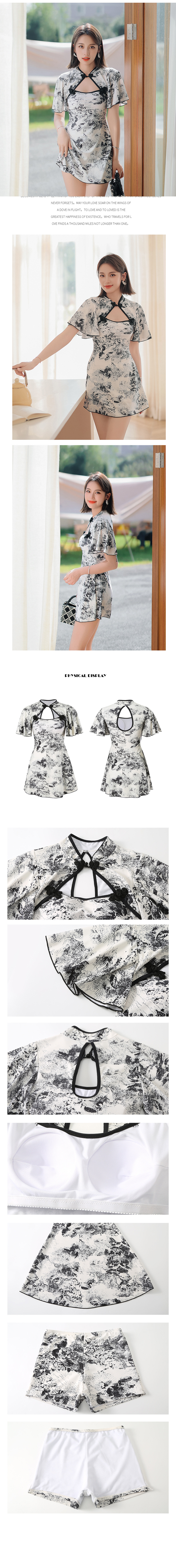復古水墨印花顯瘦時尚連身旗袍泳衣