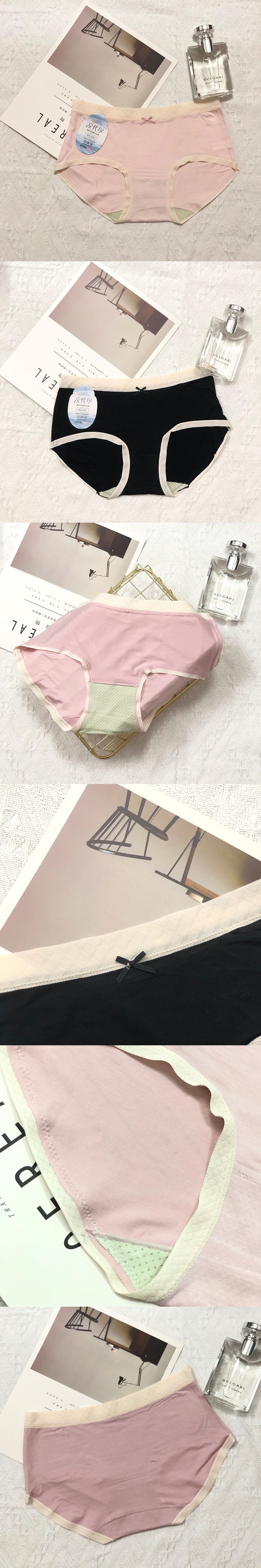 日系莫代爾蕾絲邊艾草底襠無痕拼色低腰透氣內褲