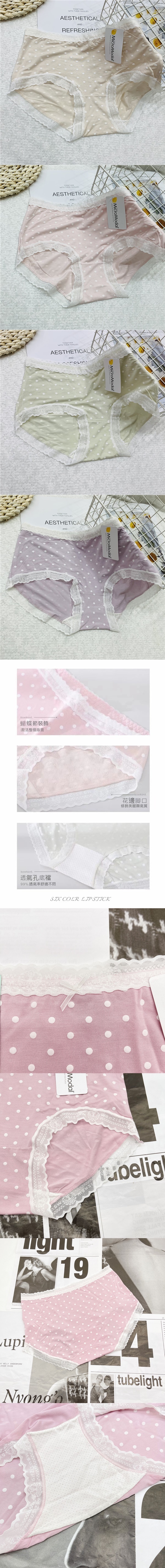 日系大碼莫代爾蕾絲邊圓點中腰透氣底襠三角內褲