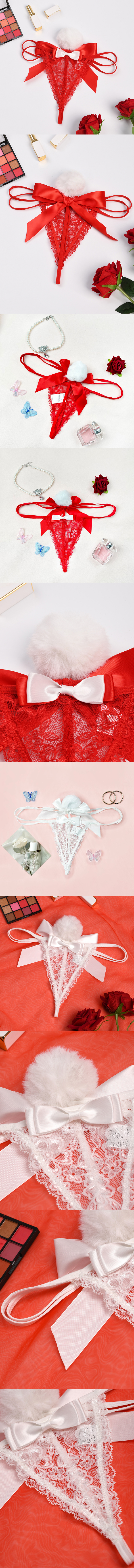 中大尺碼 性感誘惑蕾絲蝴蝶結毛球丁字褲