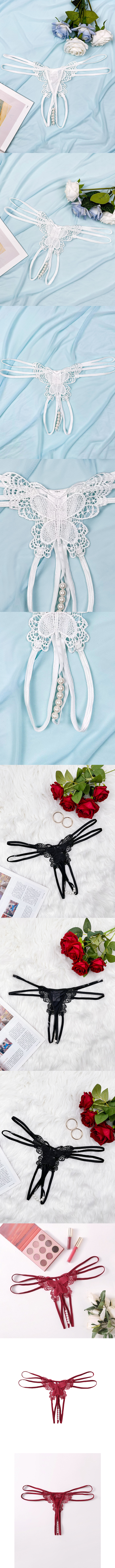 中大尺碼 性感火辣蝴蝶花紋珍珠鏈丁字褲