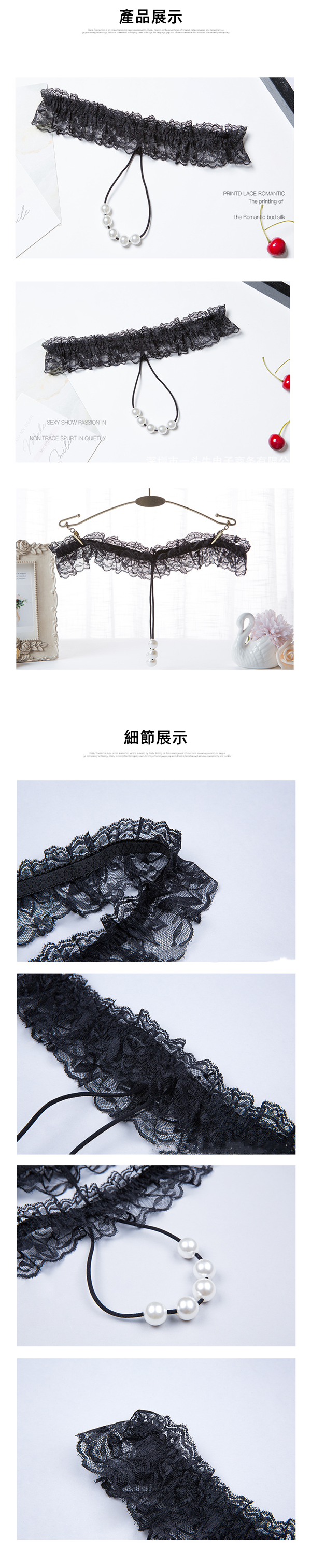 中大尺碼 性感誘惑蕾絲鏤空珍珠按摩丁字褲