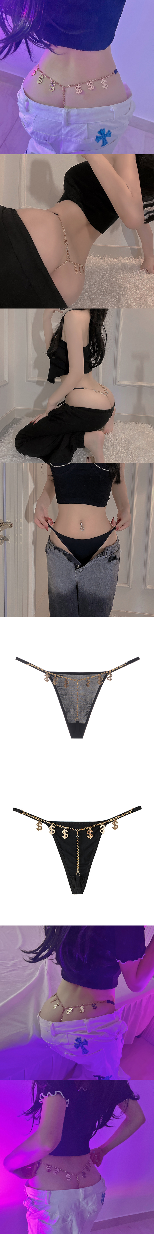 ■ 歐美金屬鏈條美元飾品冰絲低腰丁字褲
