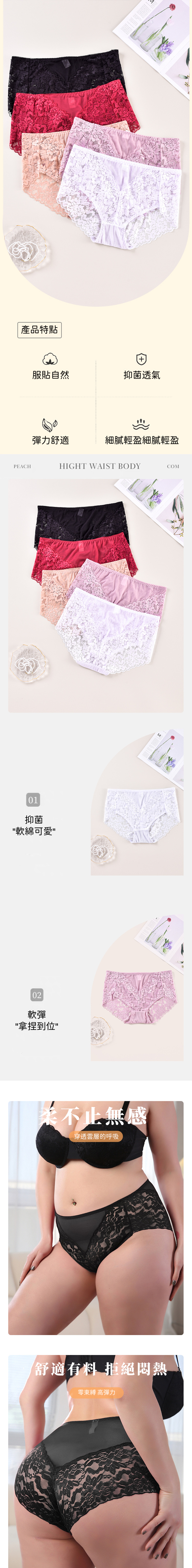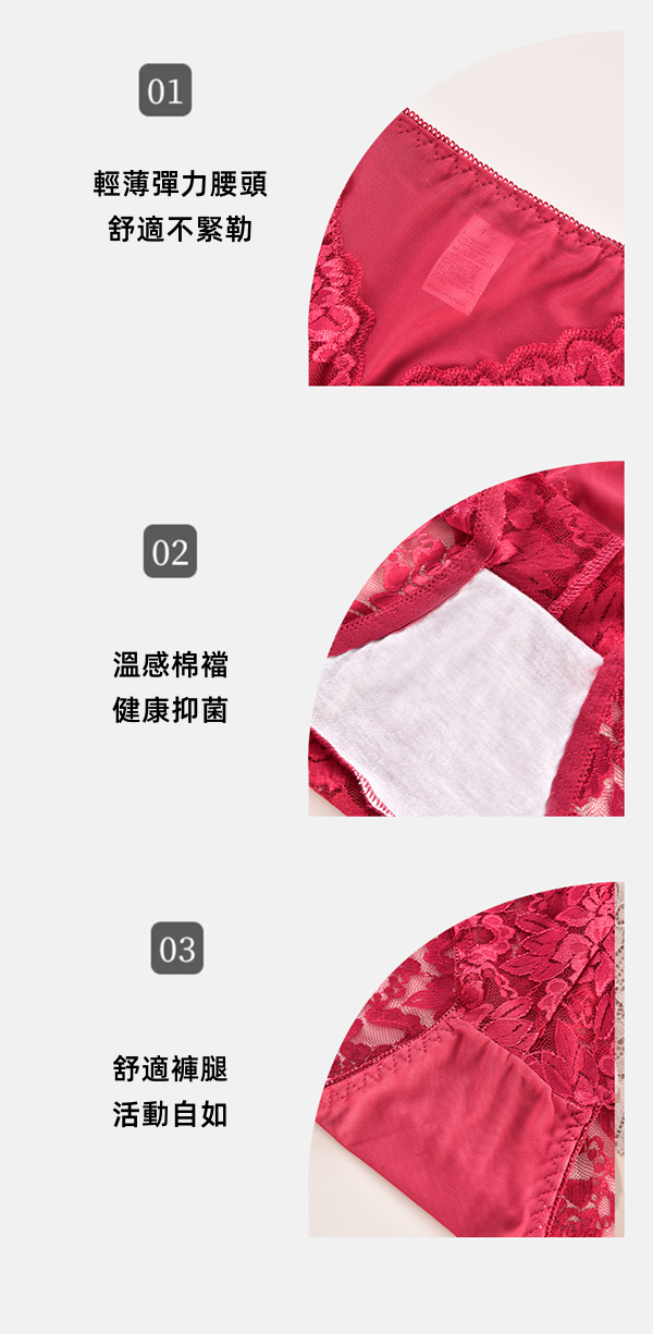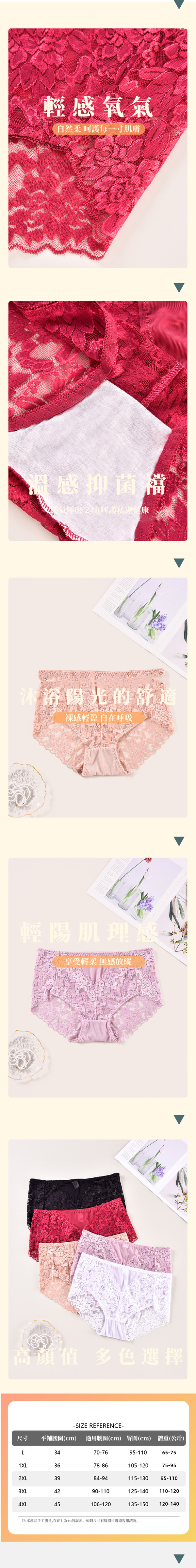 中大尺碼 舒適透氣性感中腰蕾絲三角褲